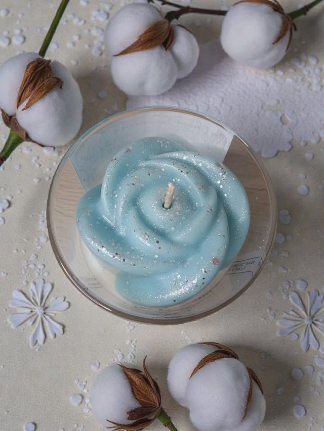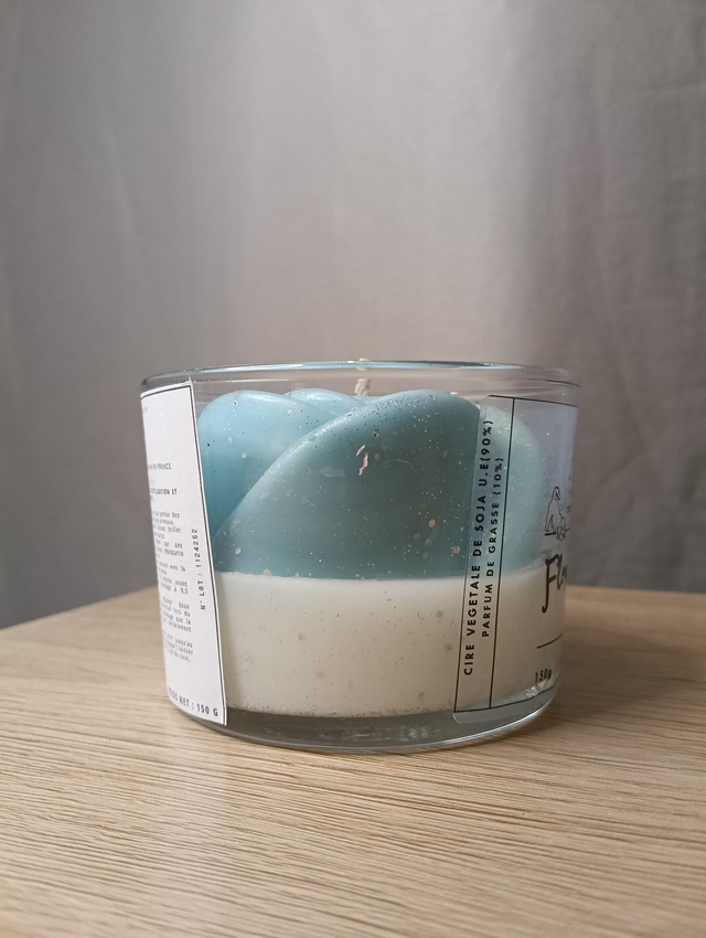 Bougie parfumée 150g – Motif fleur Bleu 3D Fragrance douce et propre inspirée du linge frais. NE PAS AVALER.