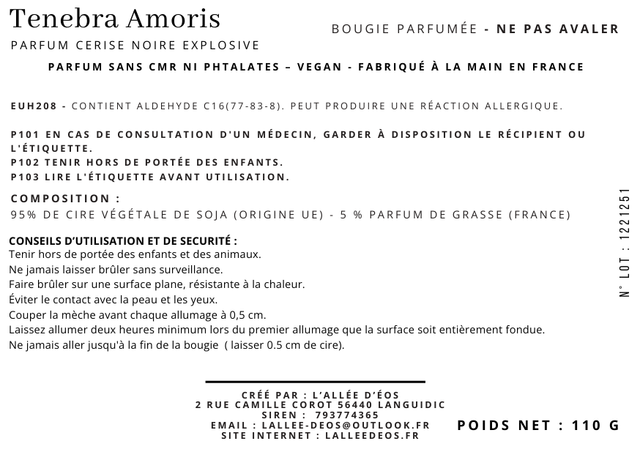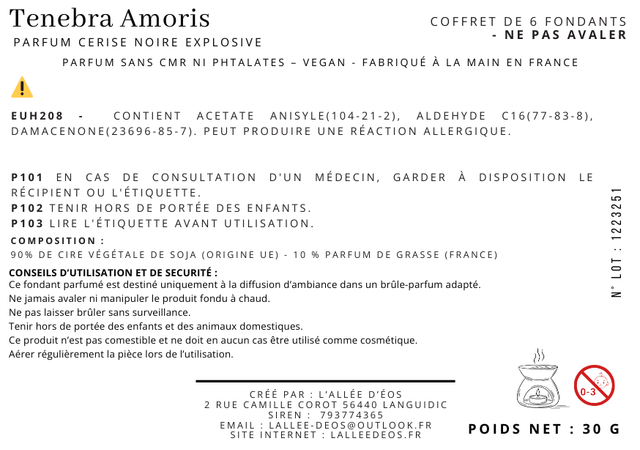 Coffret Tenebra Amoris ( bougie + fondants ) - Parfum Cerise noire explosive