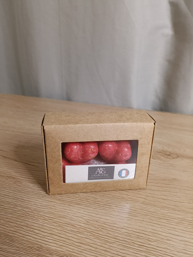 📦 Présentation : les fondants sont soigneusement disposés dans une boîte kraft à fenêtre (9 × 6 × 3 cm), éco-responsable et prête à offrir. Scellé.