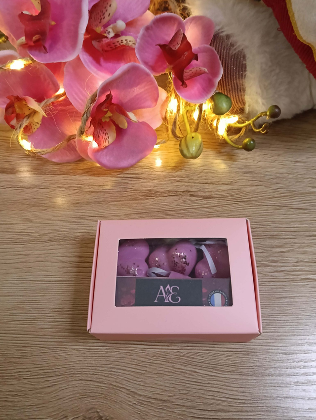 Composition : 90 % cire végétale de soja (UE) - 10 % parfum de Grasse - Durée ± 8 h ( 1 fondant)