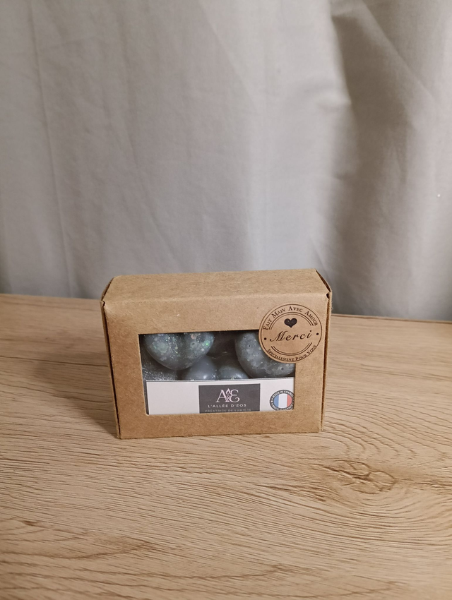 📦Présentation : les fondants sont soigneusement disposés dans une boîte kraft à fenêtre (8,5 × 6 × 3 cm), éco-responsable et élégante, prête à offrir. Scellé.