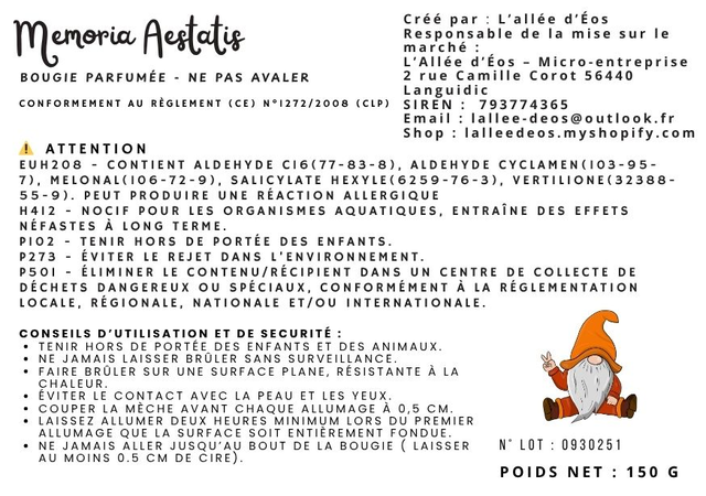 Memoria Aestatis est une création artisanale, à entretenir avec douceur pour prolonger l’été.
